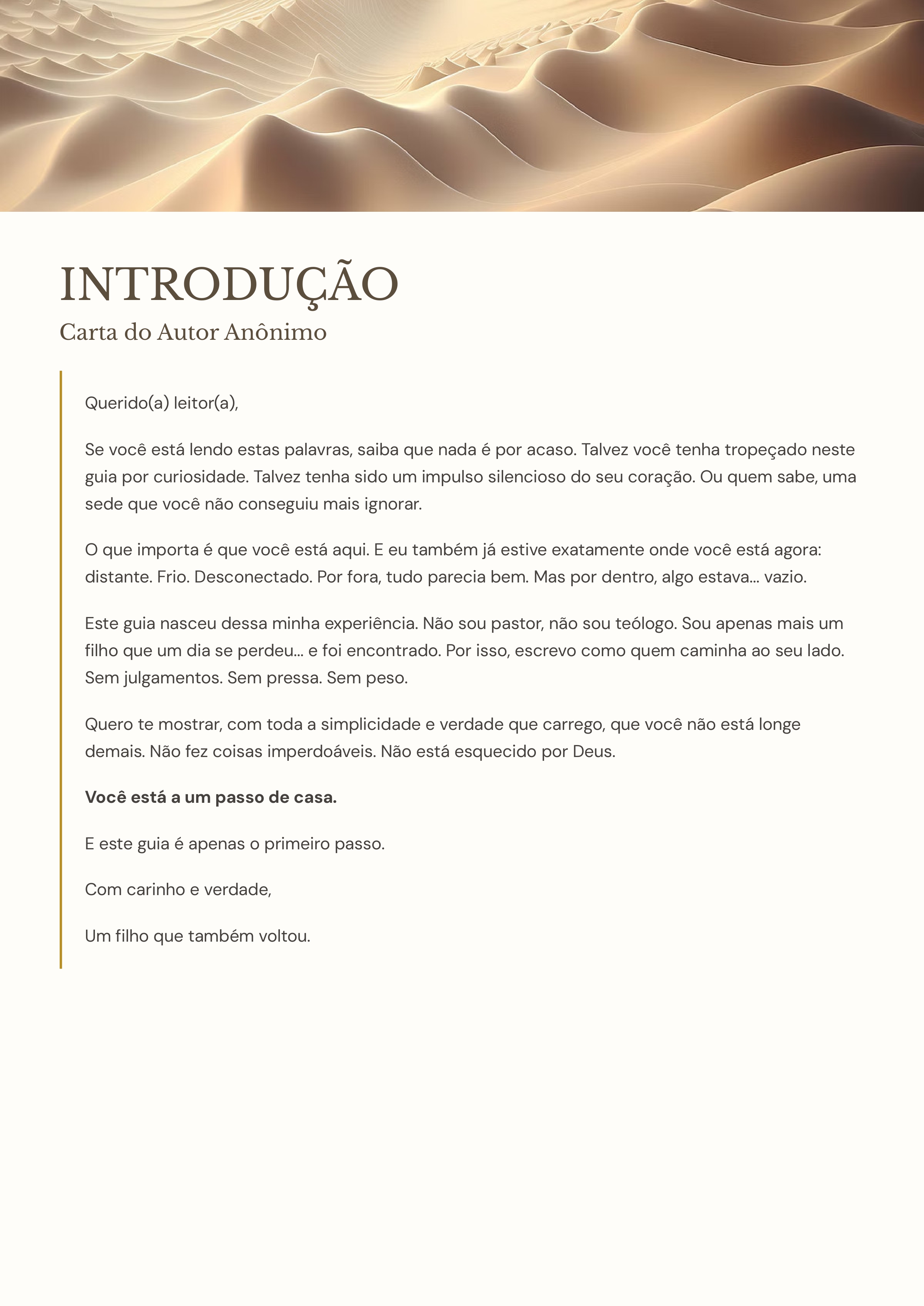 Mas Ele não esqueceu. Você é quem se afastou. E isso significa que você pode voltar.Este guia nasceu da experiência real de alguém que esteve exatamente onde você está. Sem teologia complicada. Sem religiosidade vazia. Apenas um caminho simples de volta.
