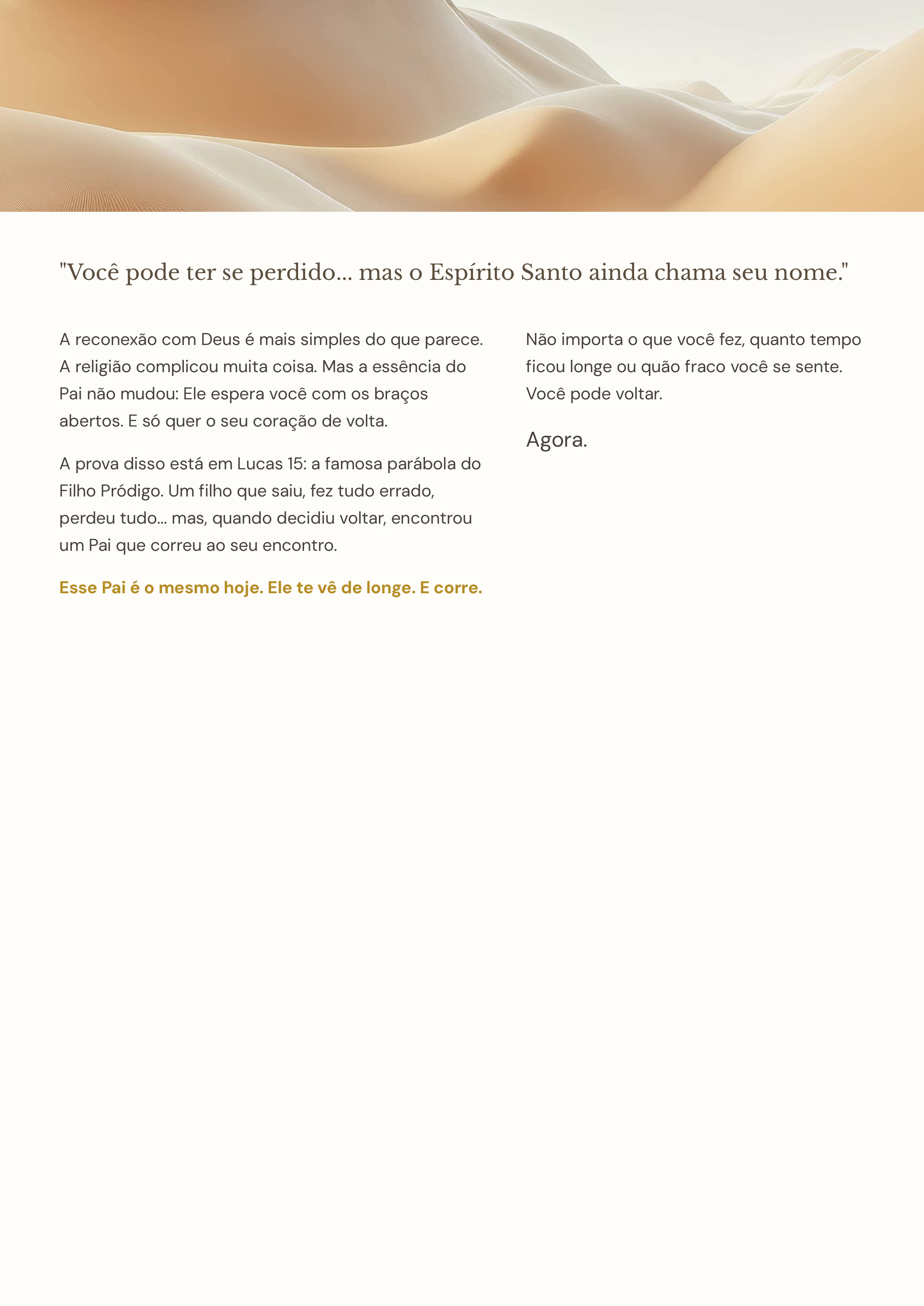 Mas Ele não esqueceu. Você é quem se afastou. E isso significa que você pode voltar.Este guia nasceu da experiência real de alguém que esteve exatamente onde você está. Sem teologia complicada. Sem religiosidade vazia. Apenas um caminho simples de volta.